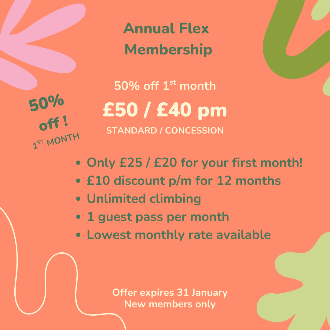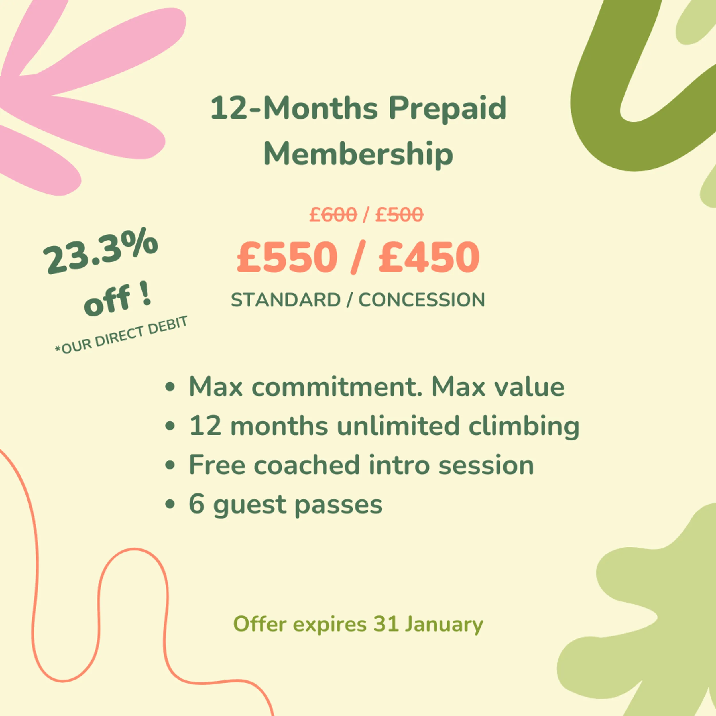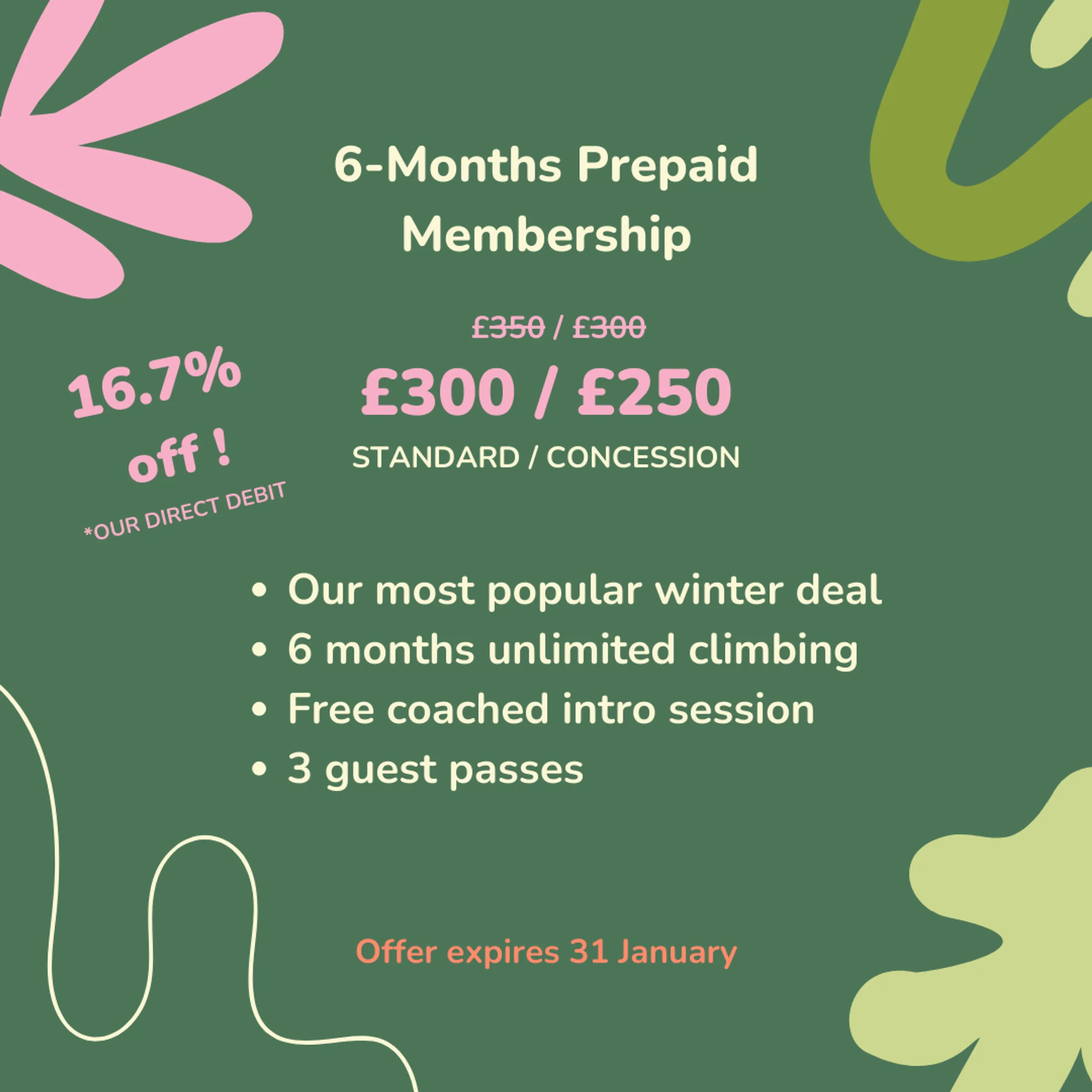 Check out our membership deals exclusive to January - a range of options to suit your climbing style. Scroll down to grab the one that works for you.