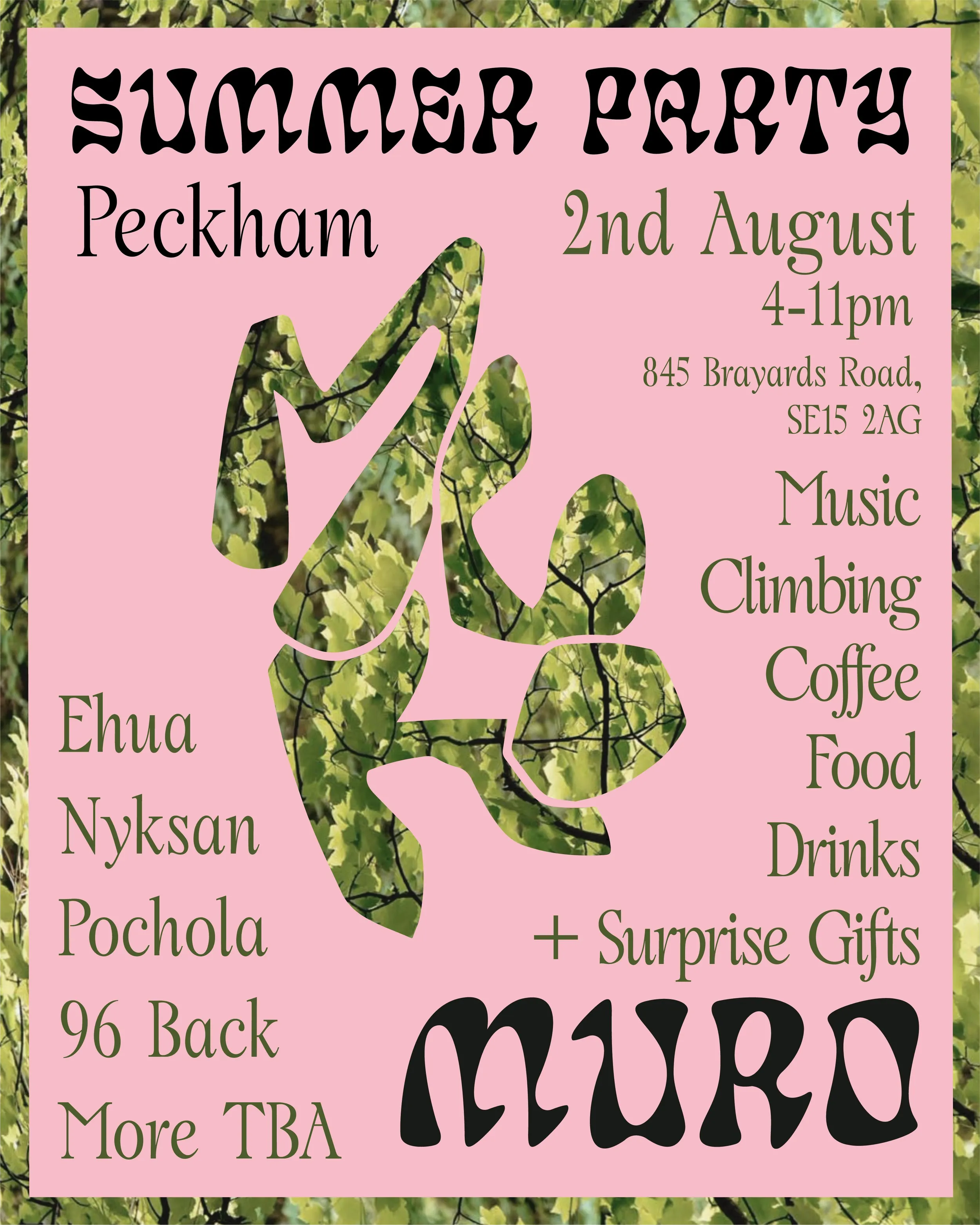 Join us for a vibrant summer celebration hosted by MURO in the heart of Peckham! Expect an exciting mix of live music, climbing, summer drinks, iced coffee and food. Featuring performances by Ehua, Nyksan, Pochola, 96 Back, and more artists to be announced. Plus, enjoy surprise gifts throughout the evening!